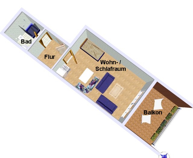 Es handelt sich hier um ein sehr großzügiges und gut geschnittenes 1-Zimmer- Appartment mit einer sehr schönen und großzügigen nach Süden ausgerichteten Terrasse welche im Sommer zum Sonnenbaden förmlich einlädt. Durch die großen Fensterfronten wirkt das Appartement sehr hell und freundlich.Das Wohn/Schlafzimmer ist mit Laminatboden ausgestattet. Ebenfalls verfügt die Wohnung über eine kleine Einbauküche. Der Flur ist großzügig gestaltet.