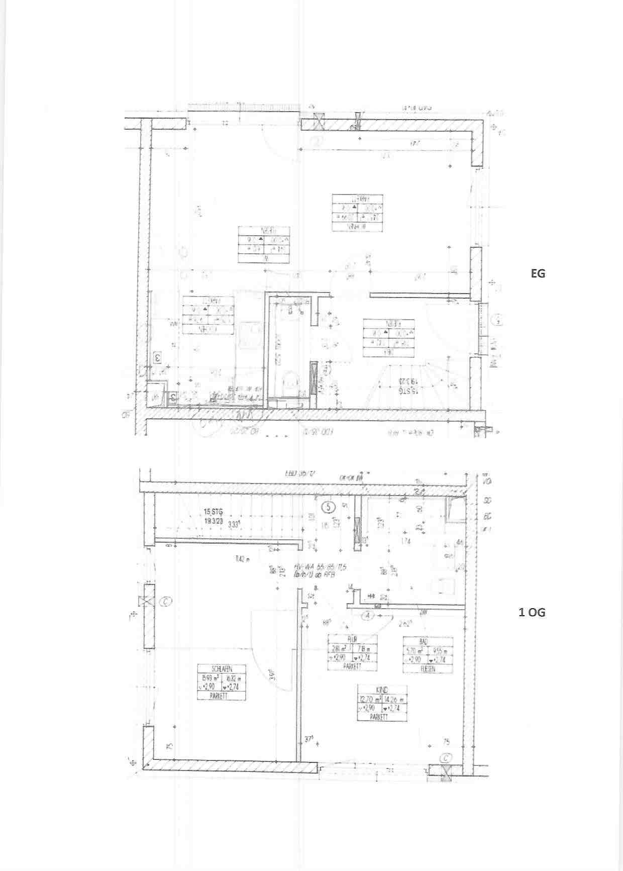 Über die gehfreundliche Treppe erreicht man das obere Stockwerk welches sich in Schlaf.- und Kinderzimmer geschickt aufteilt. Von großem Vorteil ist auch der im Schlafzimmer sich befindende begehbare Kleiderschrank welcher perfekt unter der Treppe integriert wurde. Alle Räume sind mit Parkettboden ausgestattet.