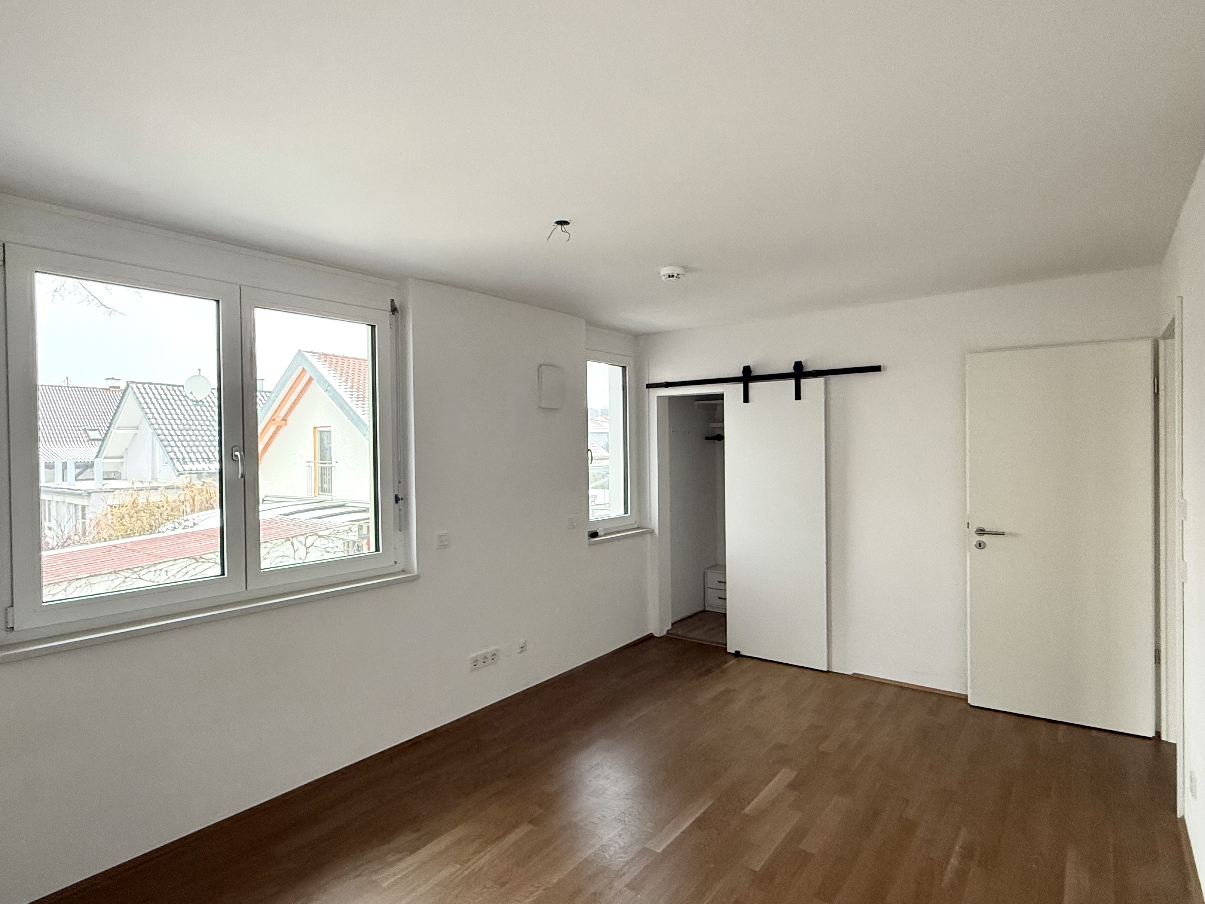 Über die gehfreundliche Treppe erreicht man das obere Stockwerk welches sich in Schlaf.- und Kinderzimmer geschickt aufteilt. Von großem Vorteil ist auch der im Schlafzimmer sich befindende begehbare Kleiderschrank welcher perfekt unter der Treppe integriert wurde. Alle Räume sind mit Parkettboden ausgestattet.