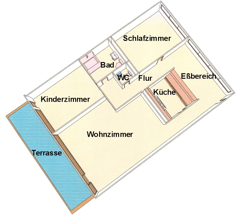 Es handelt sich hier um eine großzügige und gut geschnittene 3-Zimmer-Wohnung mit einer sehr schönen und großzügigen Südwestterrasse welche im Sommer zum Sonnenbaden förmlich einlädt. Durch die großen Fensterfronten wirkt die Wohnung sehr hell und freundlich. Die großzügige Wohnung befindet sich in einem sehr ordentlichen Zustand.Das große Wohnzimmer bietet genügend Platz, garantiert traumhafte Sonnenuntergänge und ist ebenso wie das Schlaf- und Kinderzimmer mit Parkettboden ausgestattet. Das Bad ist modern gefliest und verfügt über eine Badewanne. Ebenfalls verfügt die Wohnung über eine praktische Garderobe.